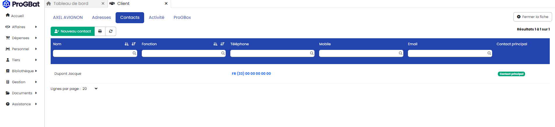 Par défaut, le premier contact saisi est considérée comme "Contact principal", c'est celui-ci qui figurera sur vos devis / factures créés pour ce client.